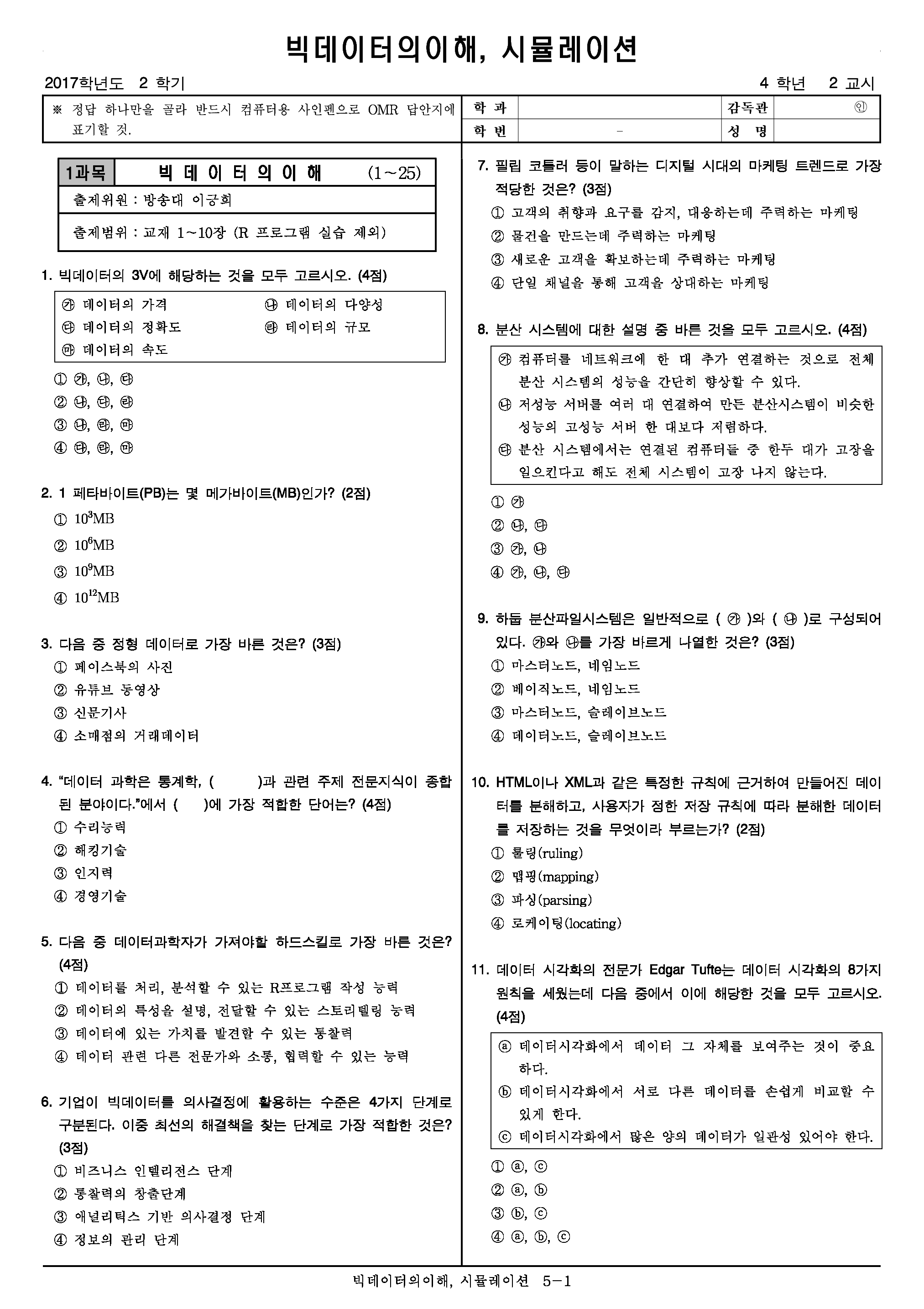 | 방송통신대학교 온라인 문제집(빅데이터의이해/2018) (0) | 2019.12.05 |