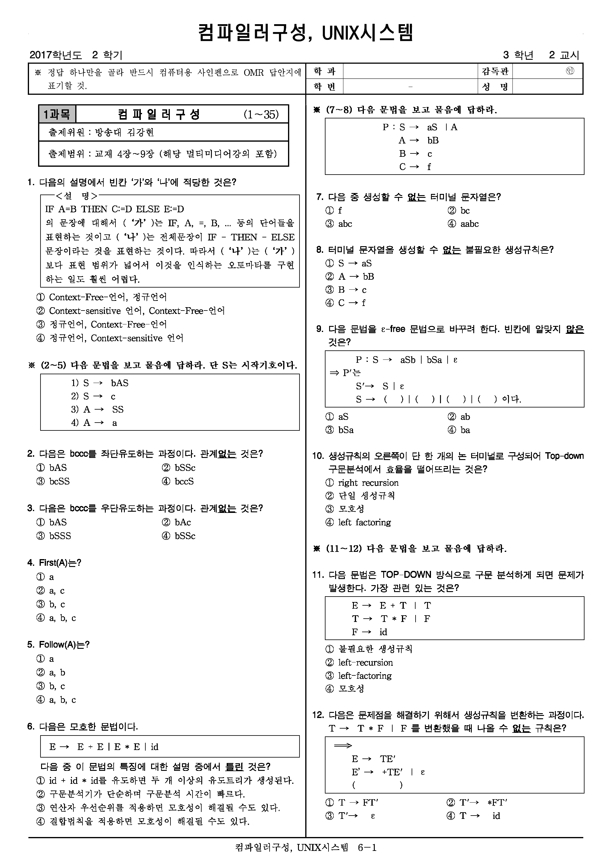 | 방송통신대학교 온라인 문제집(컴파일러구성/2018) (0) | 2019.12.06 |
