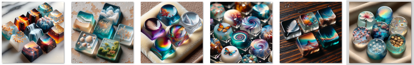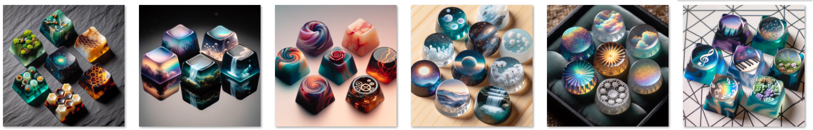 - 독창성: 일반적인 키캡과는 다르게, 레진 아트 키캡은 각각의 디자인이 독특하고 아름답습니다. 정말 키캡 하나하나가 다르며 대부분 만드시는 분들이 정말 꼼꼼하고 예쁘게 만드려고 노력해주신 작품이기 때문에 쓰는 입장에서는 만족도가 정말 높습니다.