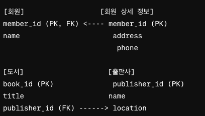 식별 관계의 예: '회원' 테이블과 '회원 상세 정보' 테이블