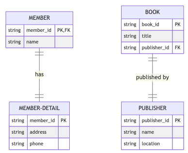 비식별 관계의 예: '도서' 테이블과 '출판사' 테이블