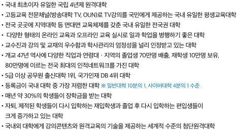 Q : 한국방송통신대학교의 특징은 무엇이 있나요?
