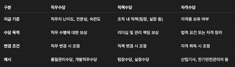 - 직책수당은 ‘어떤 위치에서 하느냐’에 대한 보상,
