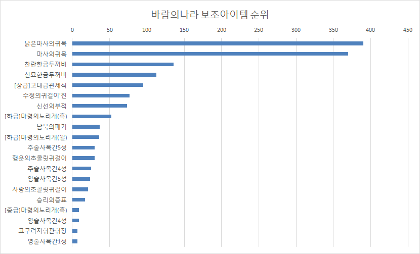 선호도 / 바람의나라 보조 아이템 순위 / 바람의나라 보조 아이템 랭킹 / 바람의나라 보조 아이템 티어 등