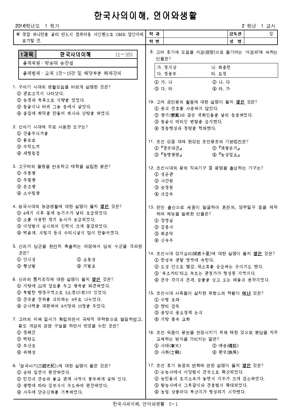 | 방송통신대학교 자동채점 문제집(한국사의이해/2017) (2) | 2020.02.07 |