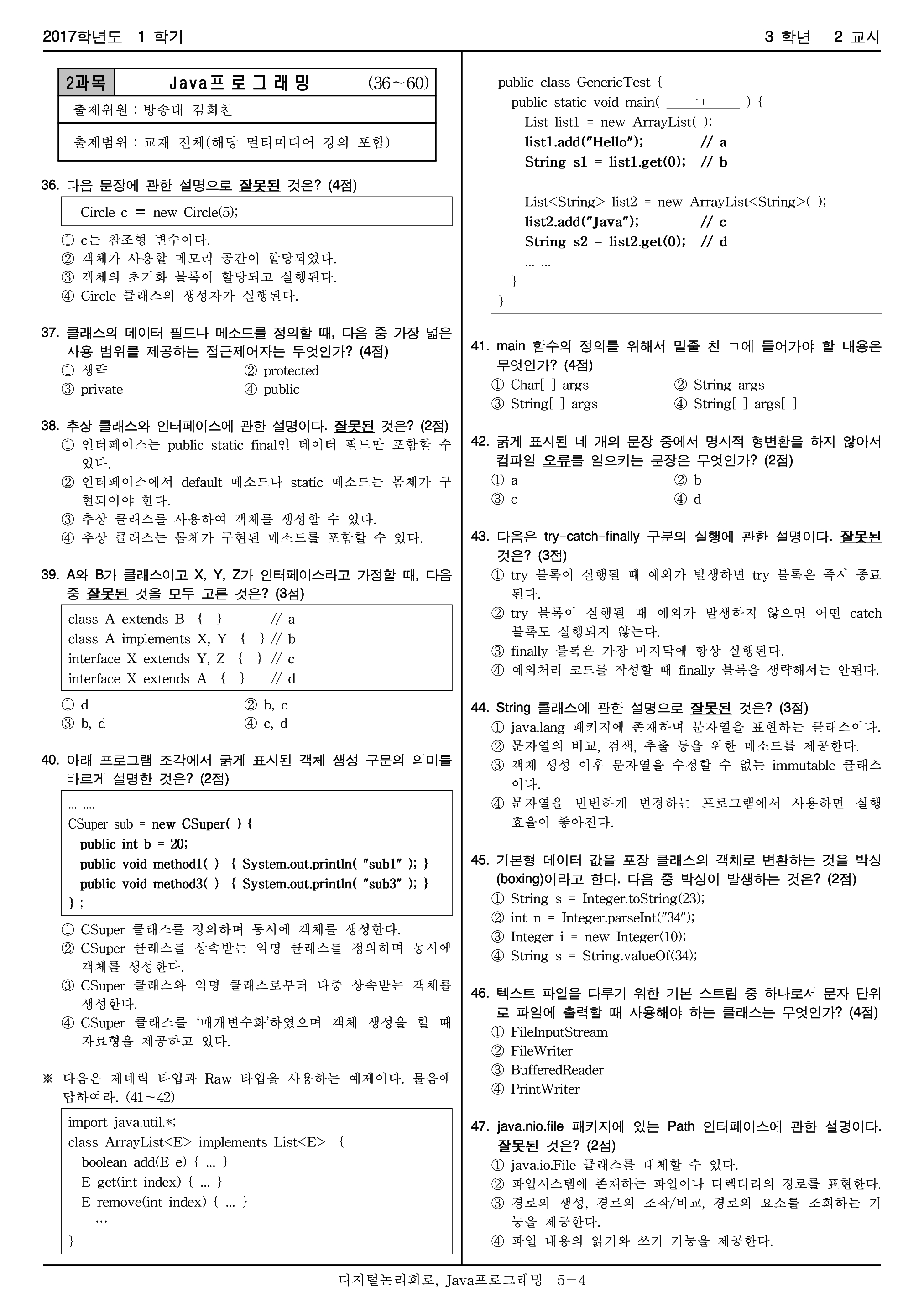 | 방송통신대학교 기말고사 자동채점(java프로그래밍/2016) (2) | 2020.02.16 |