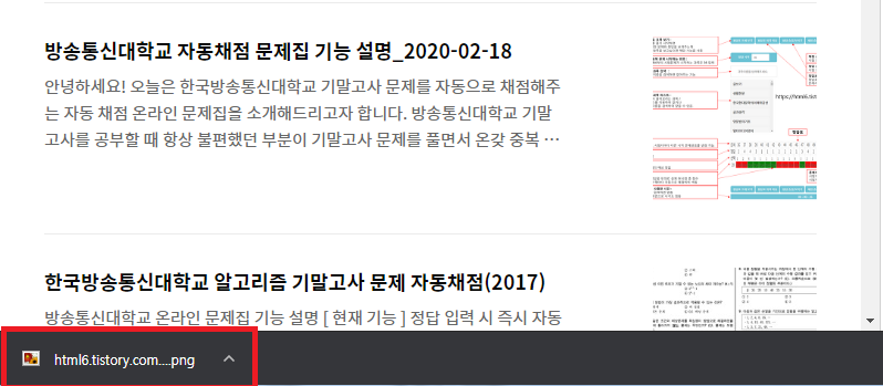 6. 크롬 브라우저 하단에 해당하는 페이지를 캡쳐한 png 파일이 생성됩니다.