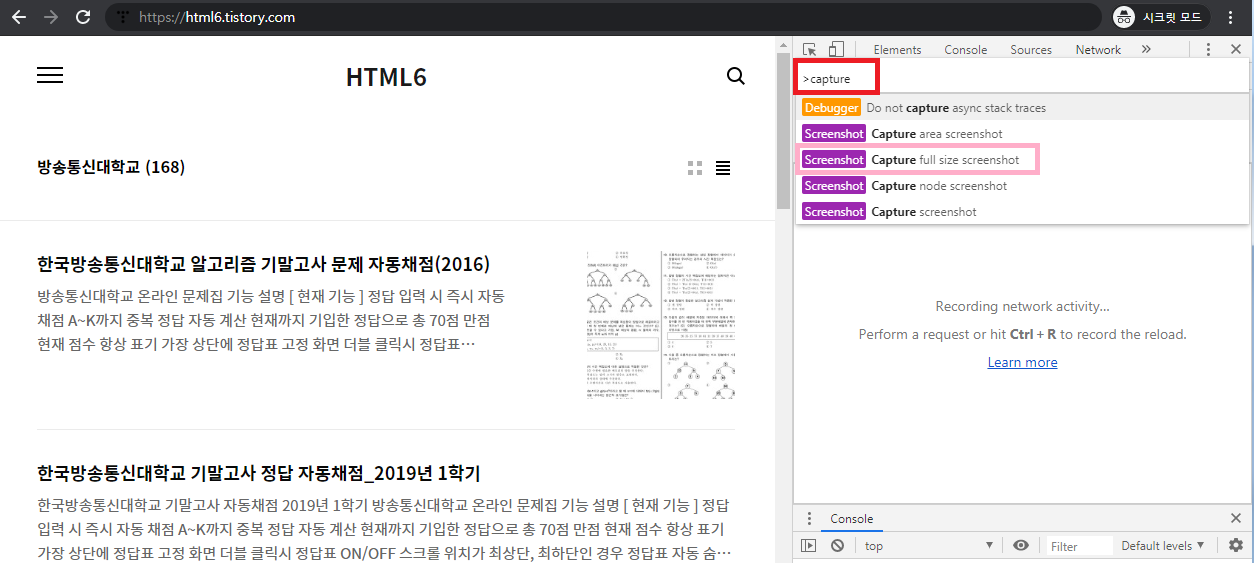 정말 간단한 작업 몇 번만 해주시면 바로 웹 페이지를 풀 스크린으로 캡처하실 수 있습니다.