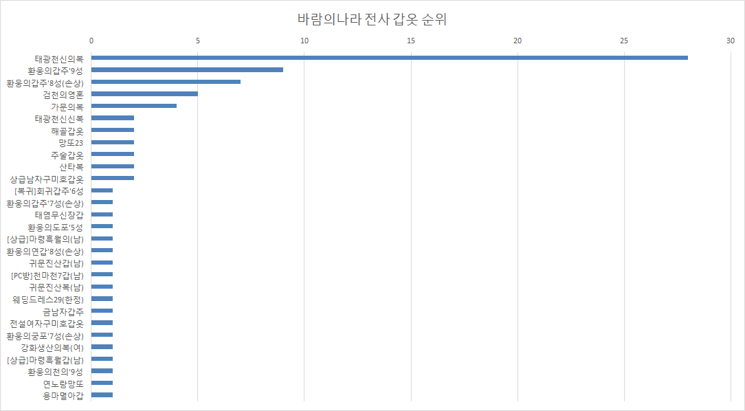 충분히 상위권 유저들의 갑옷 분포도를 볼 수 있다고 생각됩니다.