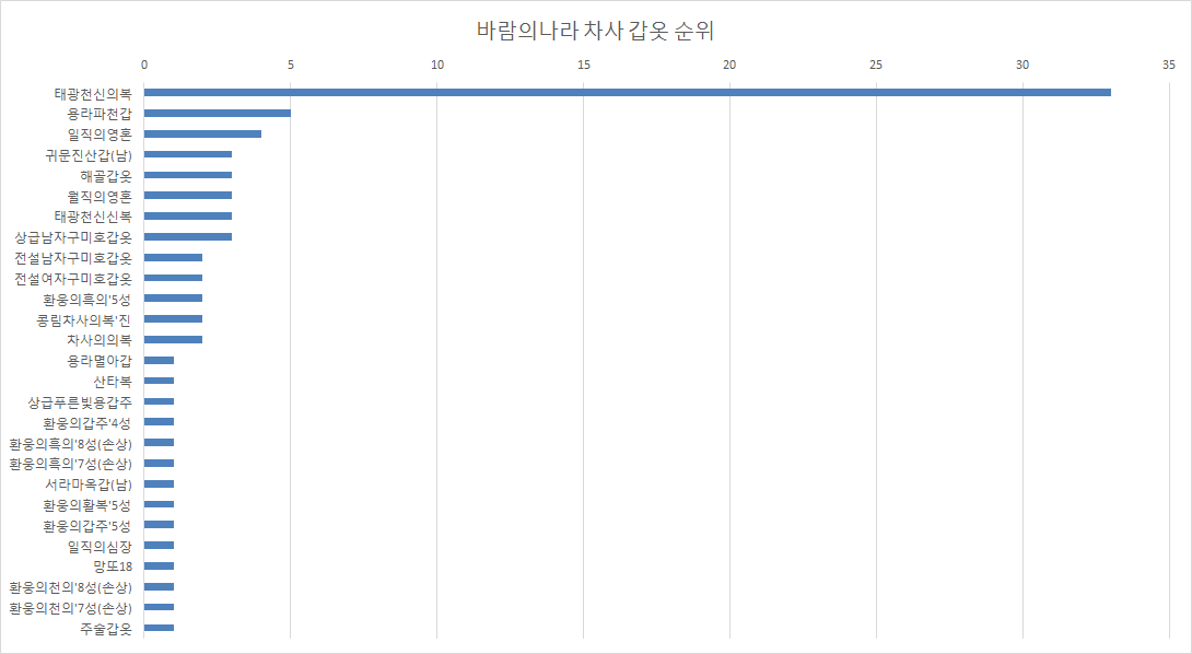 충분히 상위권 유저들의 갑옷 분포도를 볼 수 있다고 생각됩니다.