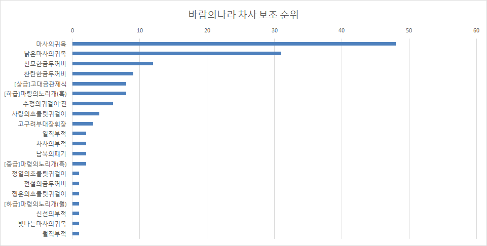| 바람의나라 차사 갑옷 순위(순위권 100명 집계) (10) | 2020.03.18 |