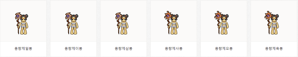 주술사 용무기는 아래와 같이 1~9봉 / 10봉 / 불멸용무기 1~5 강으로 이루어져 있습니다.