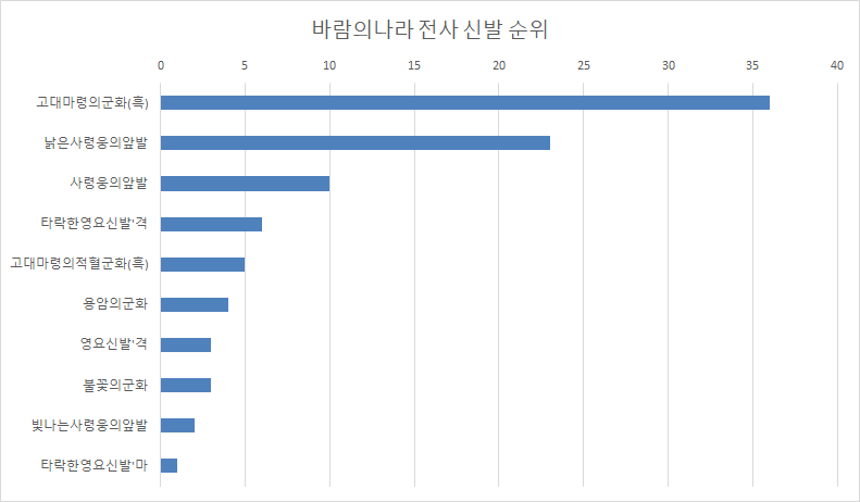 오늘은 바람의나라 게임의 상위 1위부터 100위까지의 신발을 분석하고