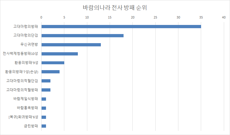 기존 최고의 방패 중에 하나였던 무신귀면방 등은 오히려 점유율이 많이 떨어진 상황입니다.