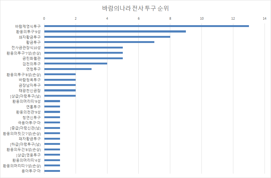 결론적으로 보면 가장 인기가 많고 강력한 투구는 "바람제영식투구" 인것으로 보입니다.