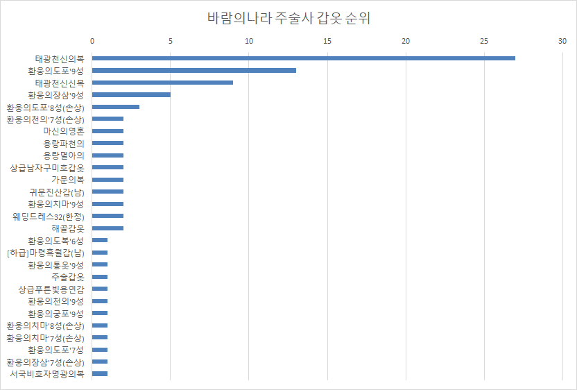 바람의나라 차사 갑옷 순위(순위권 100명 집계)