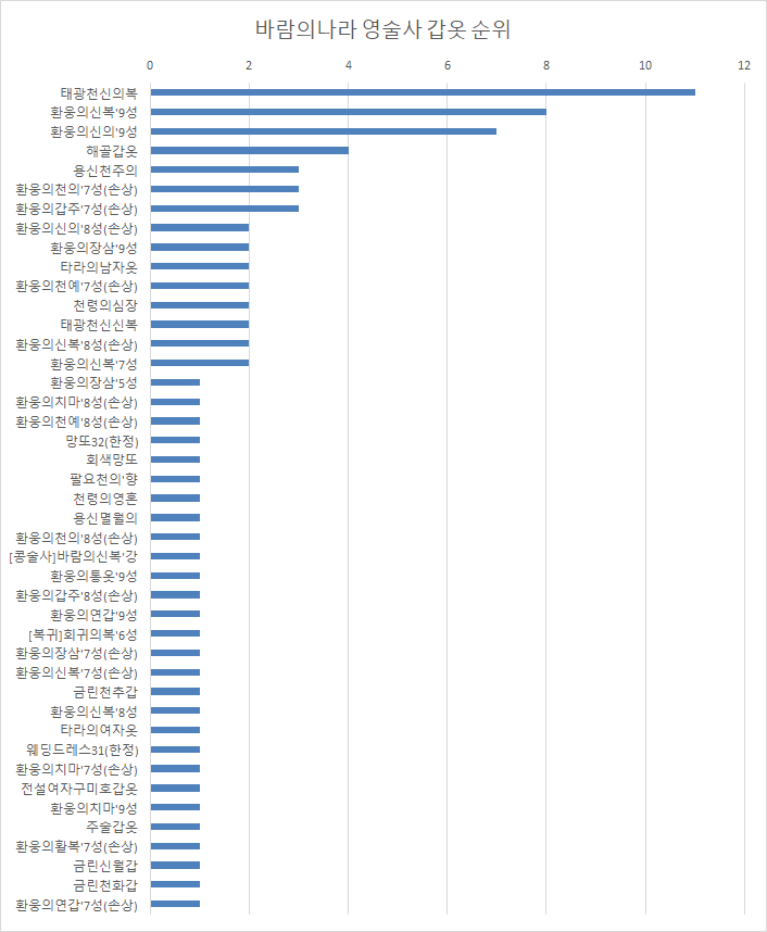 충분히 상위권 유저들의 갑옷 분포도를 볼 수 있다고 생각됩니다.