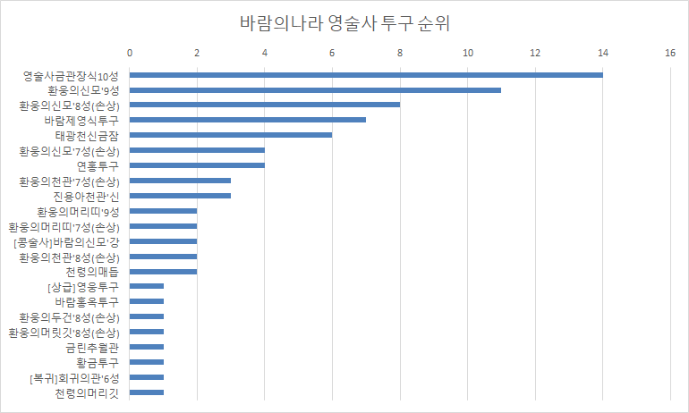 바람의나라 영술사 투구를 분석하고 통계를 조사하는 시간을 가져보겠습니다.