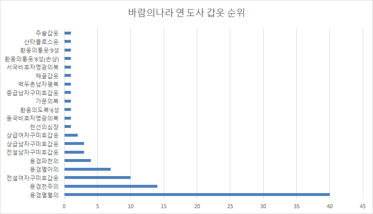 용겸멸월의가 40% 이상을 차지하며 압도적으로 도사 갑옷 순위 1위를 차지하였습니다.