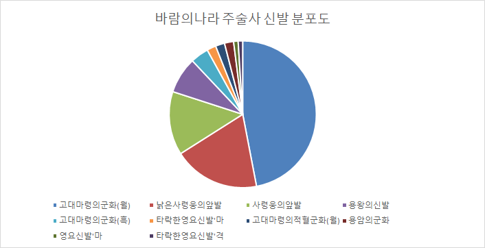 고대마령의군화(월) 가 압도적으로 점유율이 높은것으로 보아 다른 신발보다 가성비도 성능도 월등한것으로 보입니다.