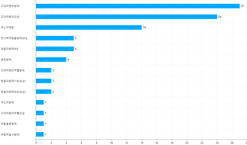 결론적으로 보면 가장 인기가 많고 강력한 전사 방패는 고대마령의방패 인것으로 보입니다.