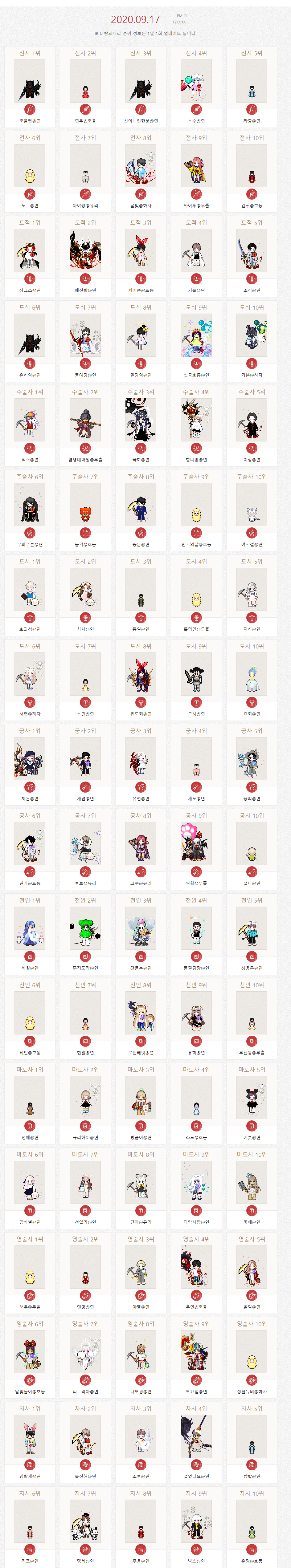 바람의나라 직업별 랭커(2020-08-17)