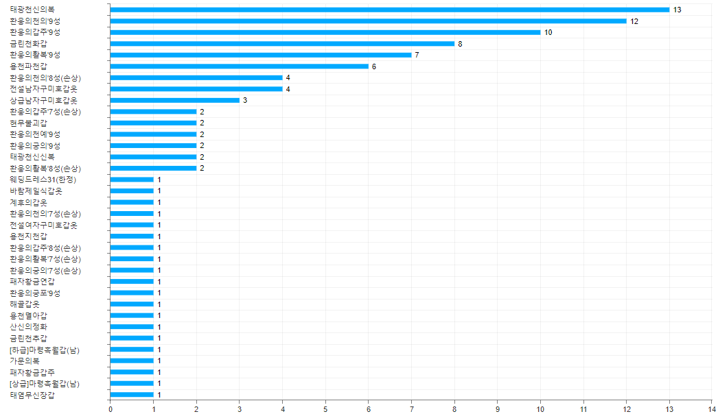 결론적으로 보면 가장 인기가 많고 강력한 도적 갑옷은 태광천신의복 인것으로 보입니다.