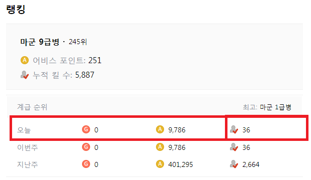 3. 오늘 킬 수 가 가장 높은 순서대로 집계하여 순위 랭킹 집계