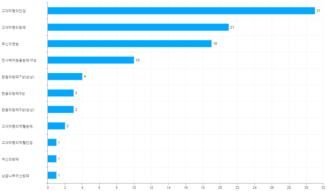 결론적으로 보면 가장 인기가 많고 강력한 전사 방패는 고대마령의단검 인것으로 보입니다.