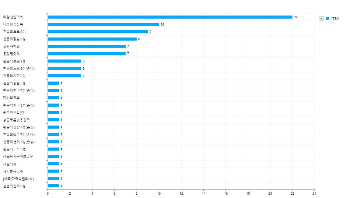 태광천신신복이나 환웅류 치마, 도포류가 최근들어 점유율이 많이 높아지긴 했지만 아직 변동이 없는것으로 보입니다.