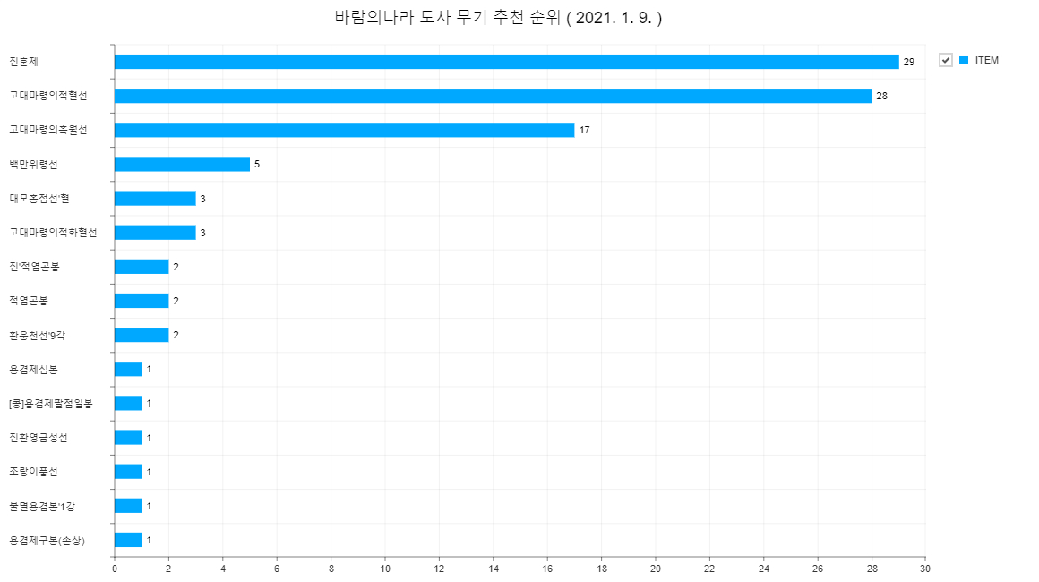 충분히 최상위권 도사 유저들의 무기 순위 및 티어 통계를 볼 수 있다고 생각됩니다.