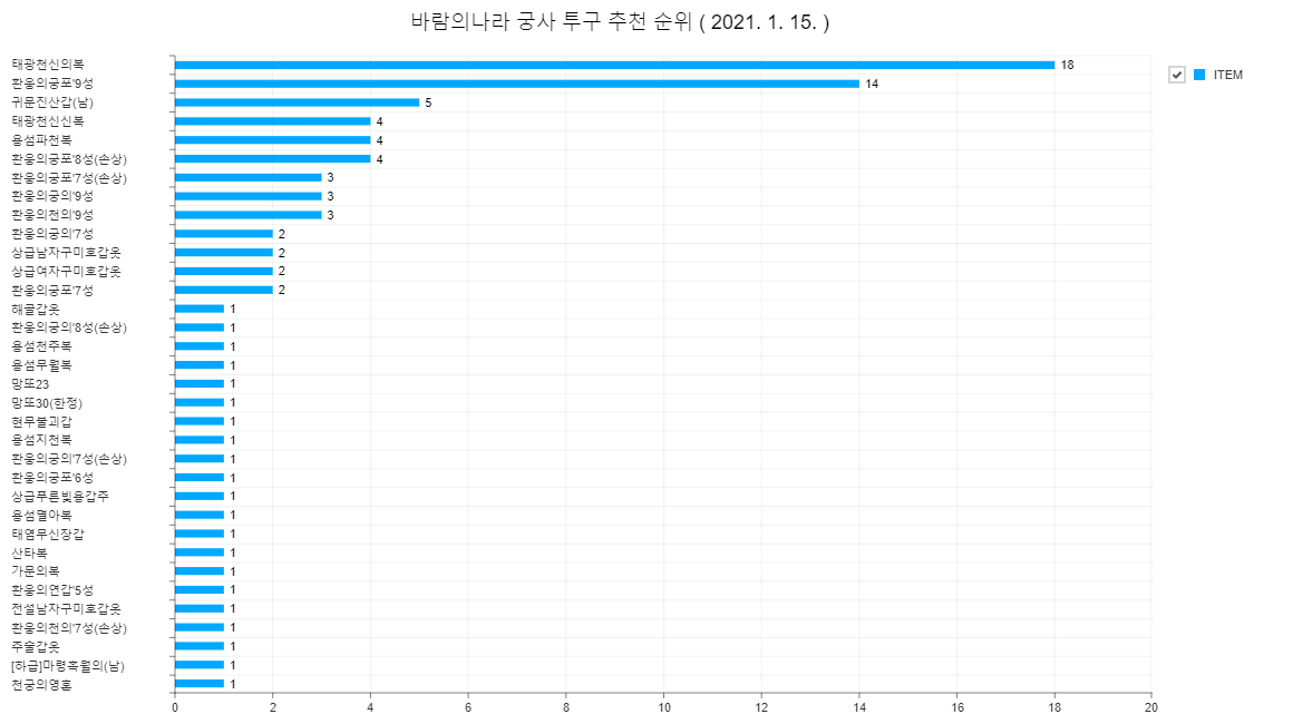 결론적으로 보면 가장 인기가 많고 강력한 궁사 갑옷은 태광천신의복인것으로 보입니다.