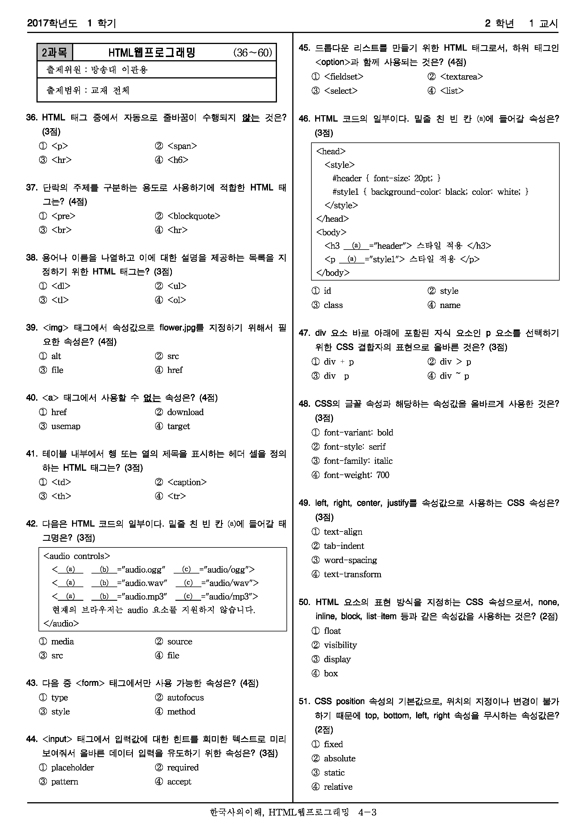 | 한국방송통신대학교 HTML웹프로그래밍 기말고사 자동채점(2016) (0) | 2021.06.10 |