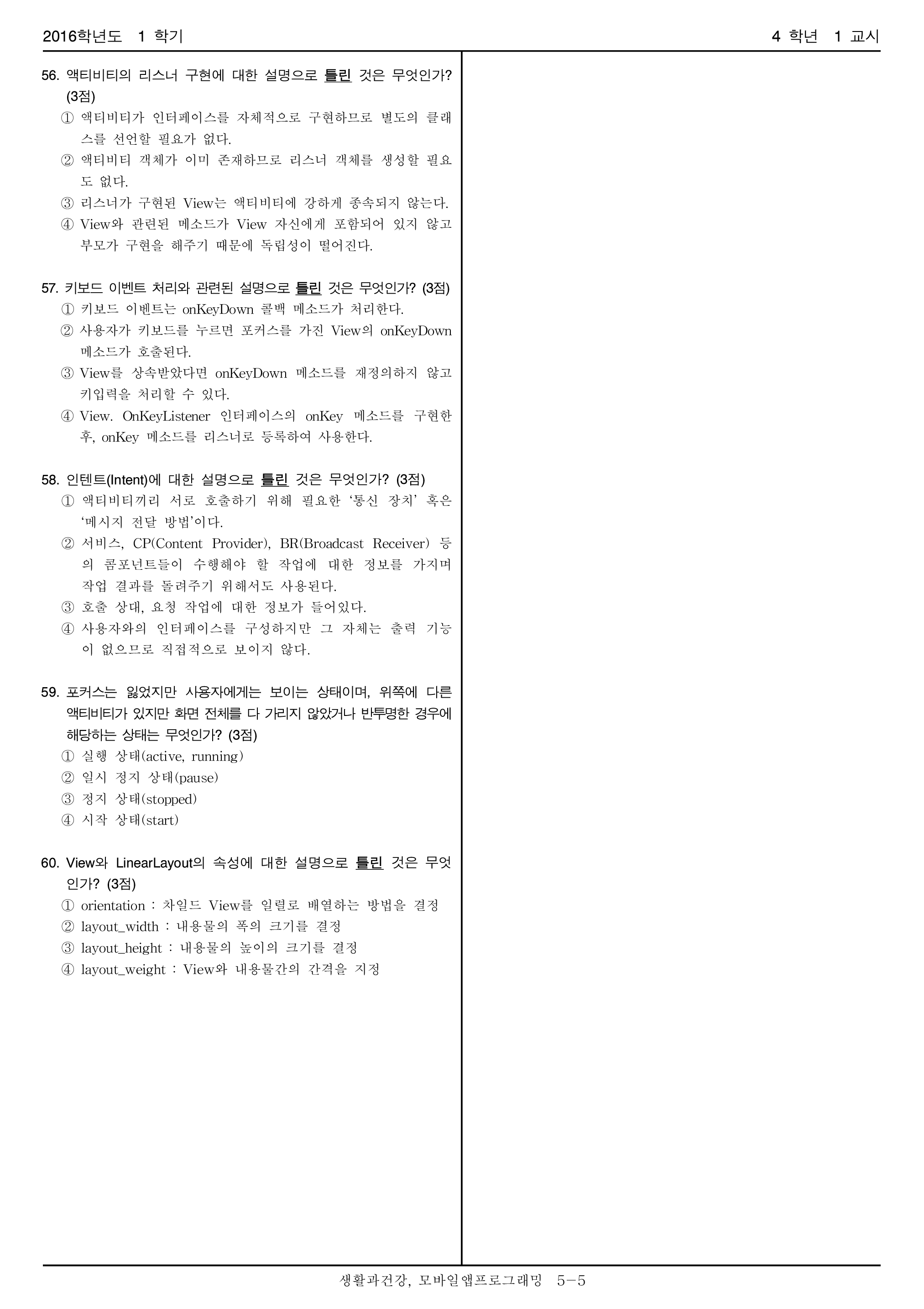 | 방송통신대학교 모바일앱프로그래밍 기말고사 시험지(2015) (0) | 2022.06.17 |