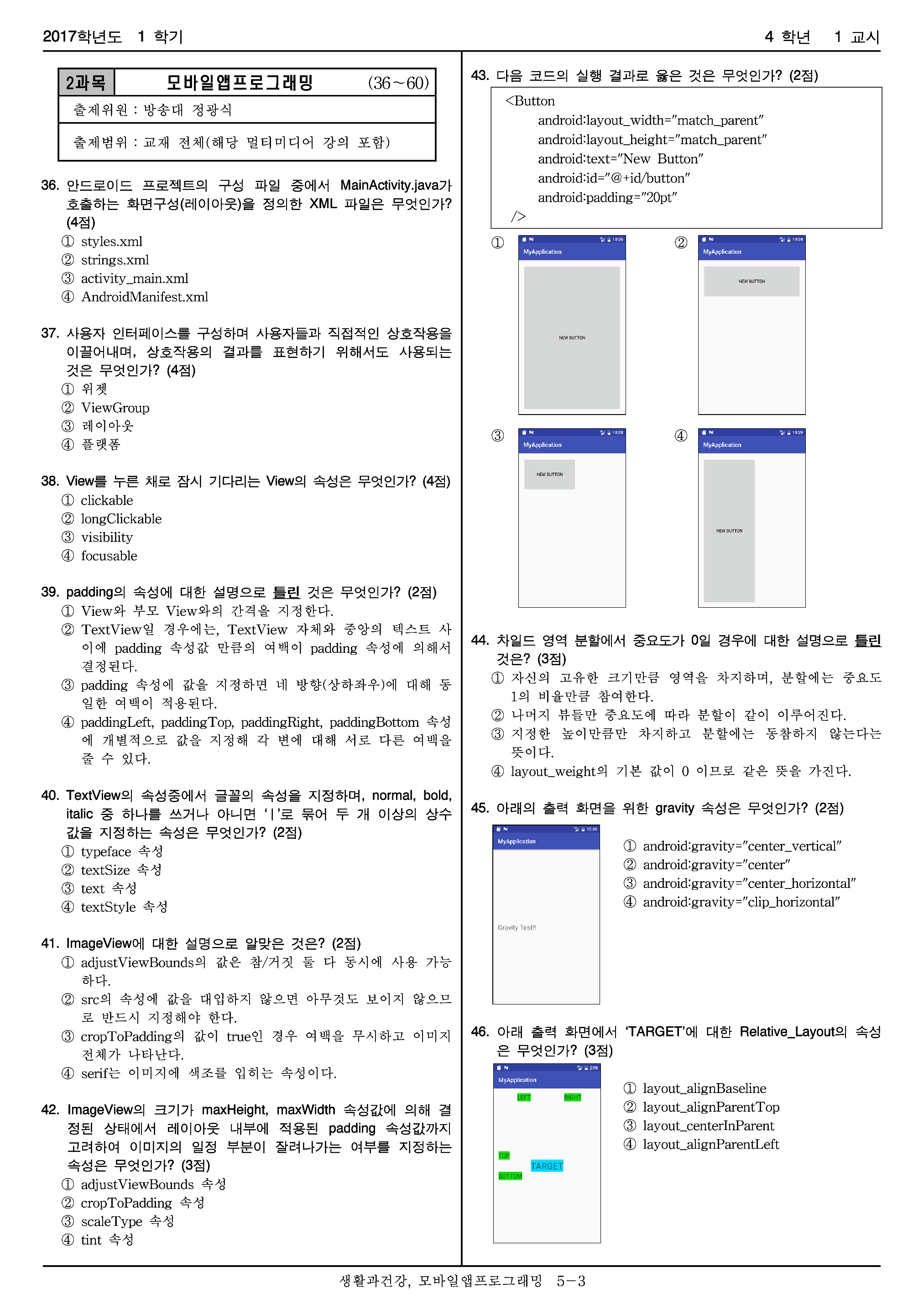 | 방송통신대학교 모바일앱프로그래밍 기말고사 시험지(2015) (0) | 2022.06.17 |