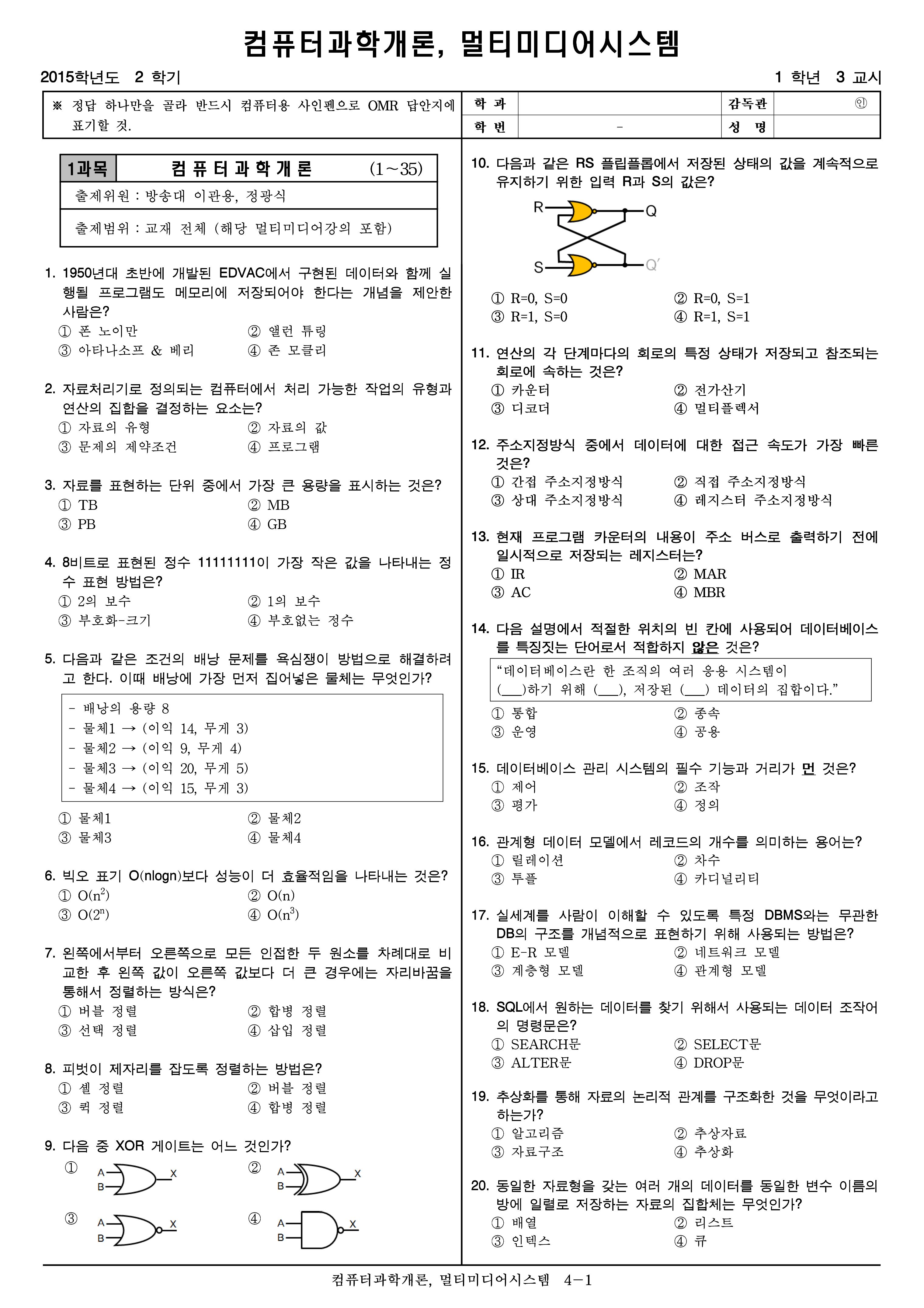 | 방송통신대학교 기말고사 자동채점 컴퓨터과학개론(2018) (0) | 2022.12.16 |