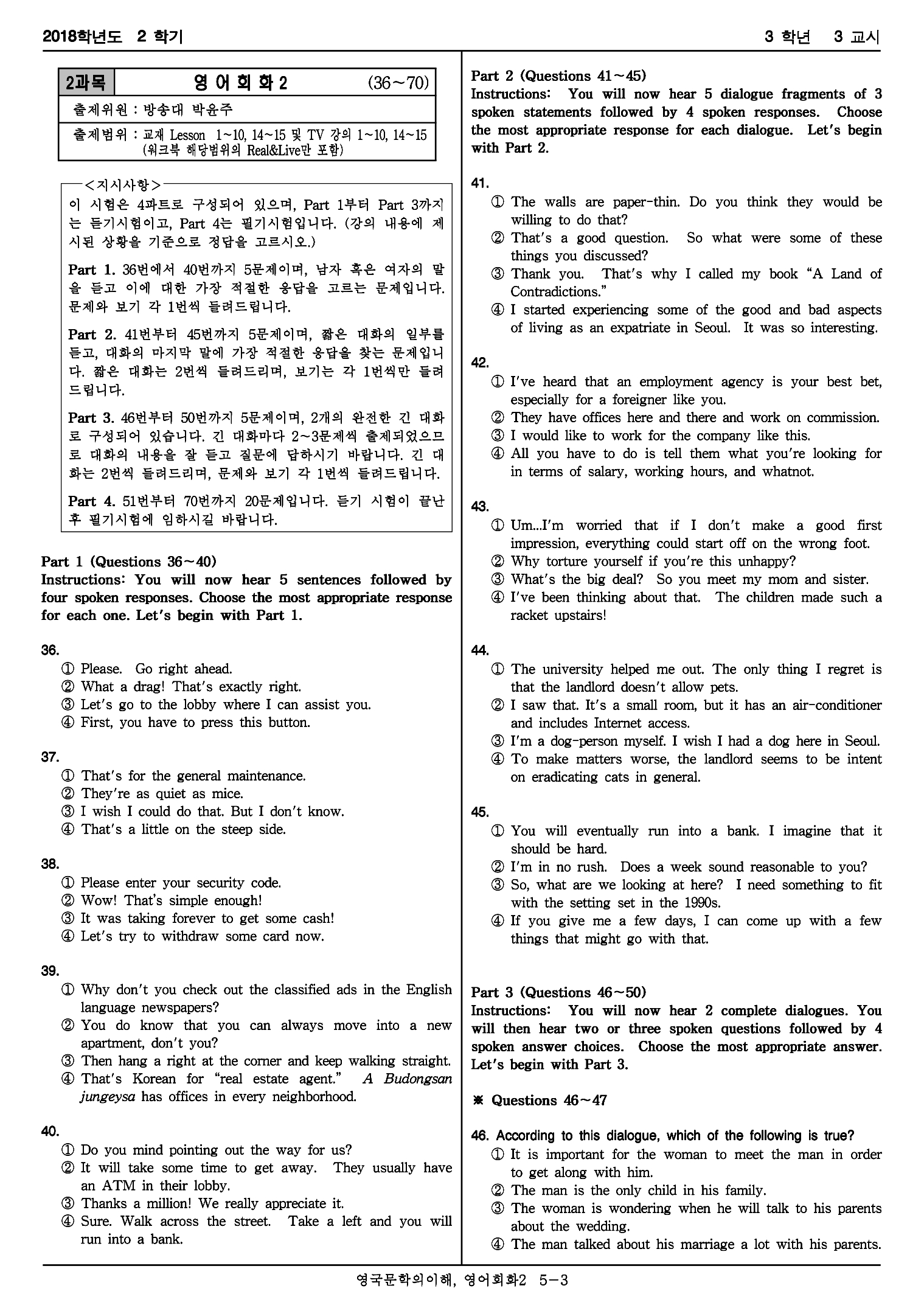 | 방송통신대학교 영어회화2 기말고사 자동채점(2014) (0) | 2022.12.16 |
