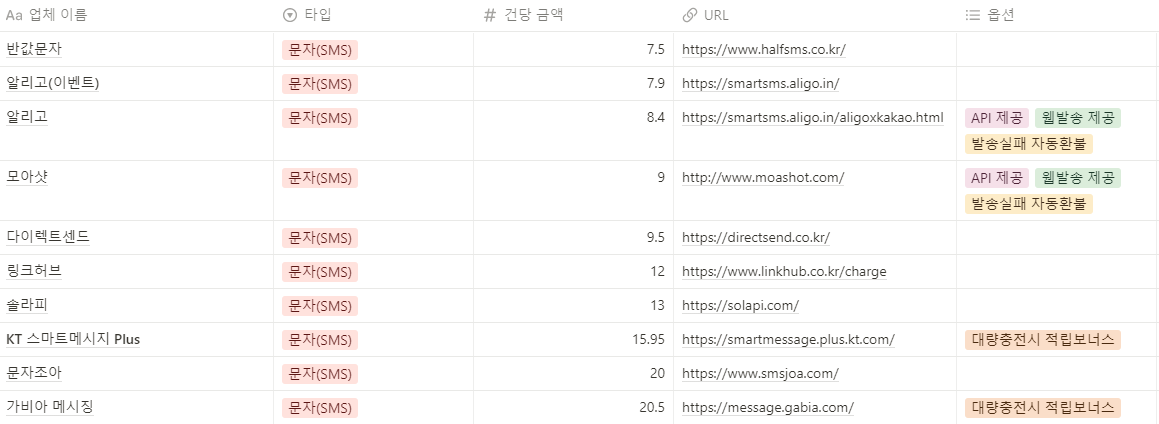 이러한 경우 정말 여러가지 기준으로 문자 발송 업체를 비교해보게 되는데