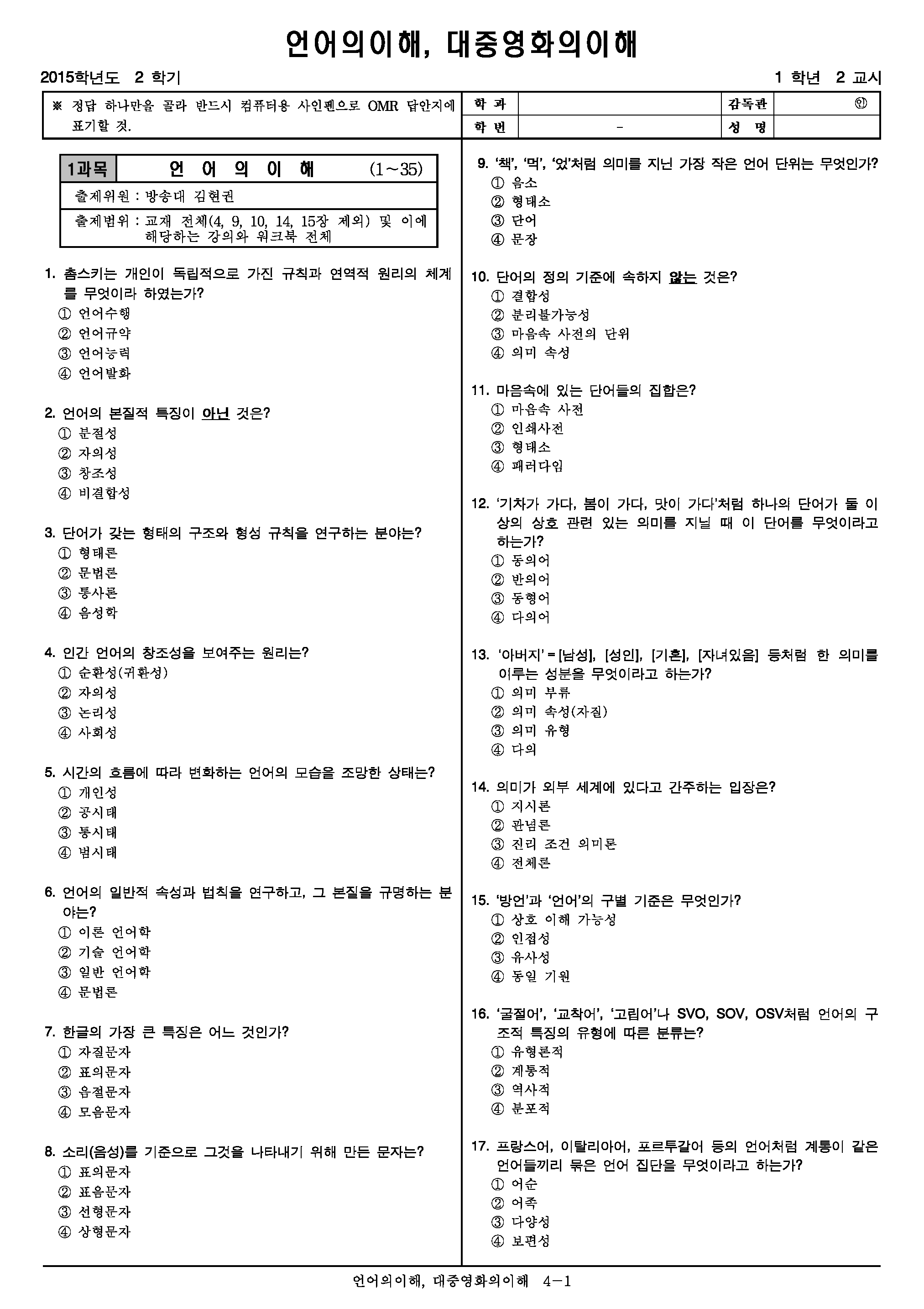 | 방송통신대학교 온라인 문제집(언어의이해/2017) (0) | 2019.11.21 |