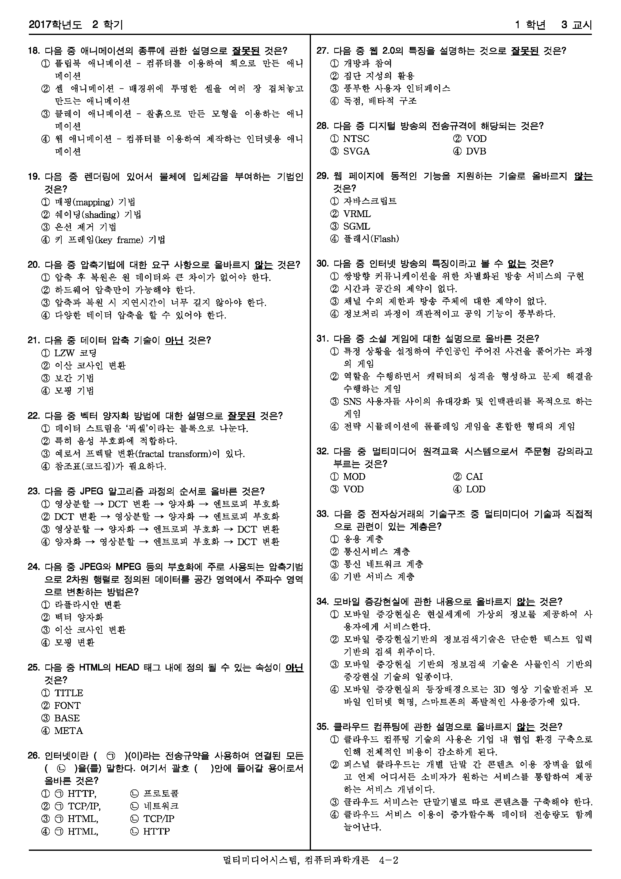 | 방송통신대학교 온라인 문제집(멀티미디어시스템/2015) (0) | 2019.11.21 |