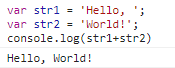 console.log(str1.concat(str2)); // 'Hello, World!'