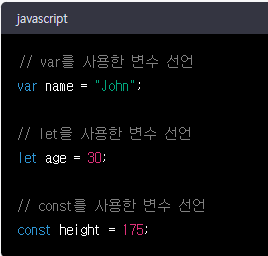 var는 예전부터 사용해왔던 키워드입니다. 하지만 var는 블록 스코프를 지원하지 않아서 전역 변수로 선언되어 문제가 생길 수 있습니다. 그래서 최근에는 let과 const 키워드를 많이 사용합니다.
