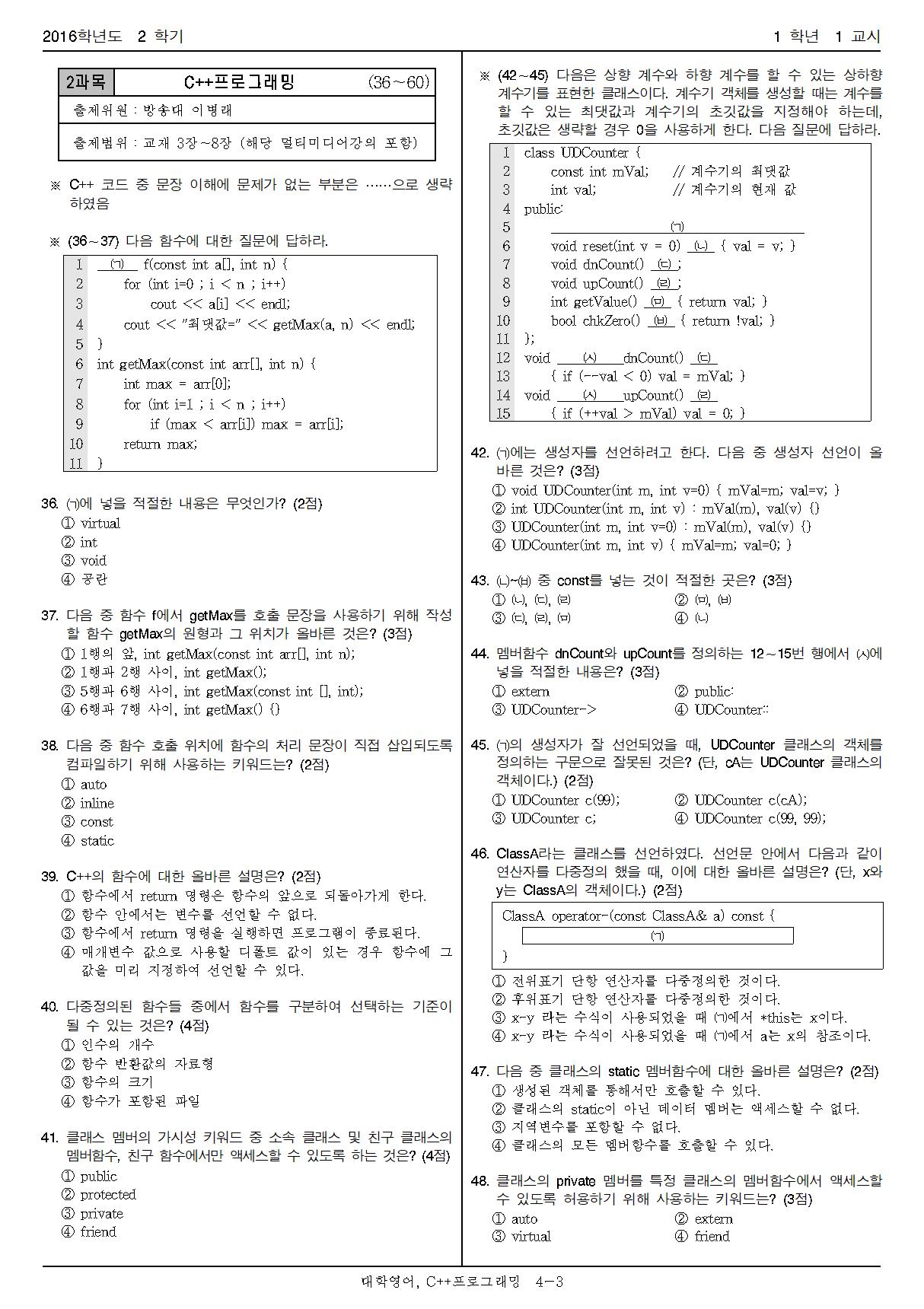 | 방송통신대학교 온라인 문제집 (C++/2014) (2) | 2019.11.25 |