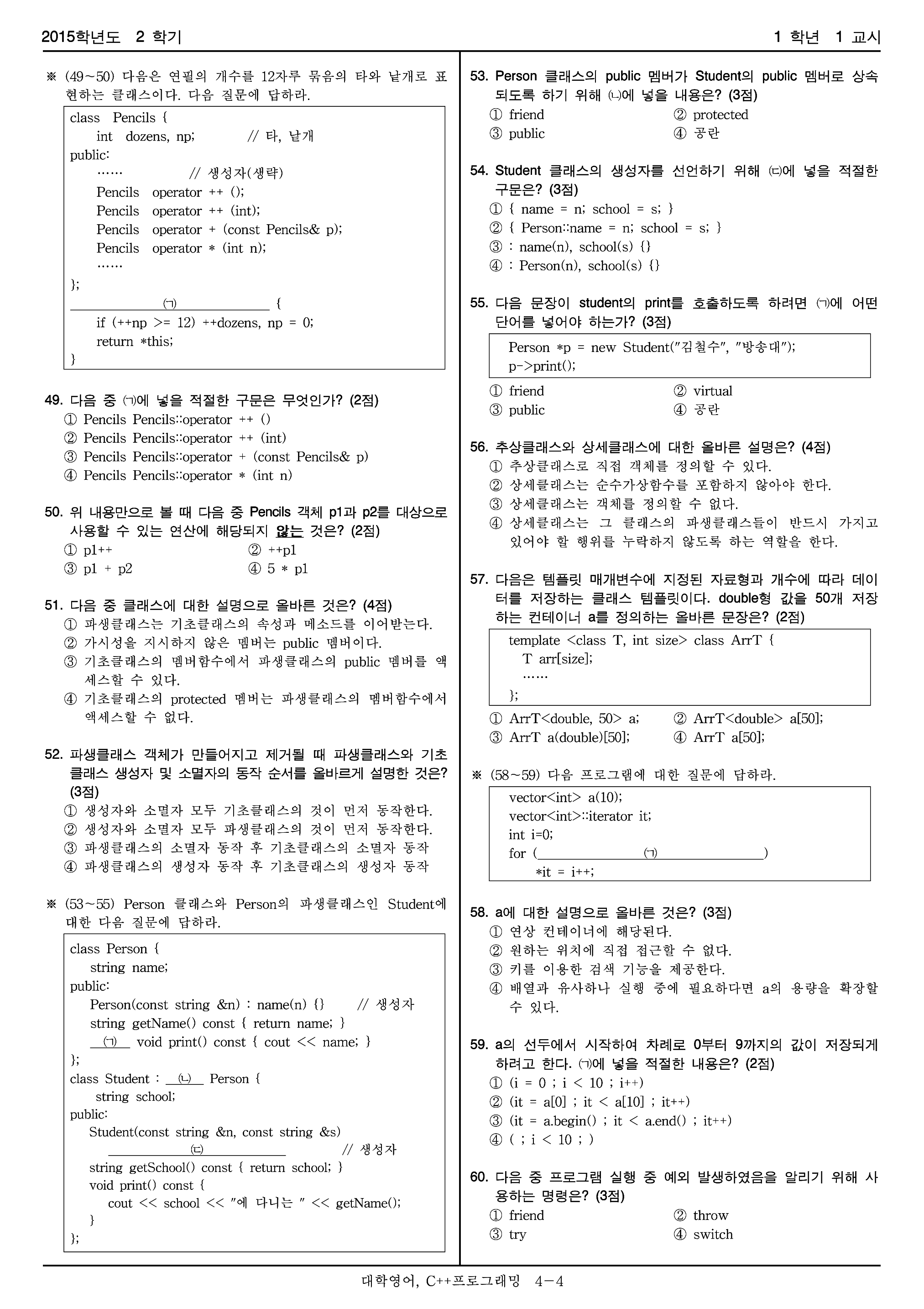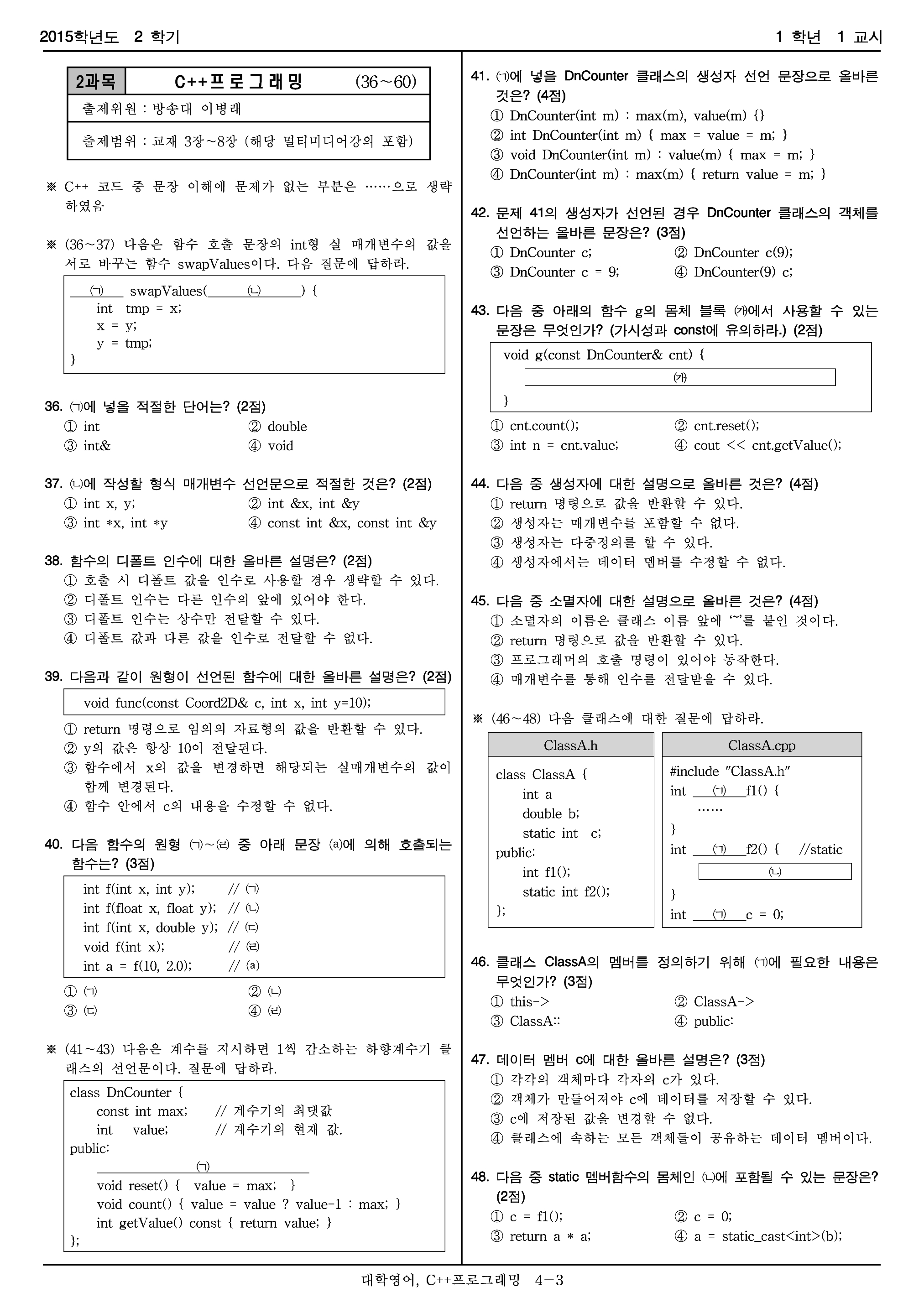 | 방송통신대학교 온라인 문제집 (C++/2014) (2) | 2019.11.25 |